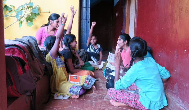 Kavitha Foundation ondersteunt het onderwijs voor de meisjes in “Baale Mane” (= huis voor meisjes) in de buurt van Bangalore in Zuid-India. Dit huis biedt 40 meisjes, in de leeftijd van 4 tot 18 jaar, die wees zijn of niet thuis kunnen wonen, een nieuwe toekomst. Vaak hebben deze meisjes kinderarbeid gedaan. Om ze een betere toekomst te geven, helpen wij ze door goed onderwijs te geven.