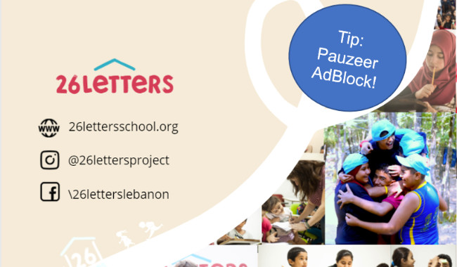 TIP: schakel AdBlock tijdelijk uit, anders werkt het niet! ----- 26 Letters is een non-profit organisatie in Beiroet, Libanon die zich inzet voor gratis onderwijs voor meer dan 100 kinderen uit Syrische vluchtelingenfamilies. Covid-19, maatschappelijke onrust, de economische crisis én de explosie van 4 augustus hebben er samen voor gezorgd dat onze kinderen en hun families kwetsbaarder zijn dan ooit. Om ze in hun eerste levensbehoeftes te voorzien, zijn wij begonnen met het uitdelen van pakketten met voedsel, medicijnen, en hygiëne- en babyproducten. Het aantal mensen dat wij helpen neemt dagelijks toe Onze middelen blijven echter achter op deze enorme groei. Help jij een handje mee?